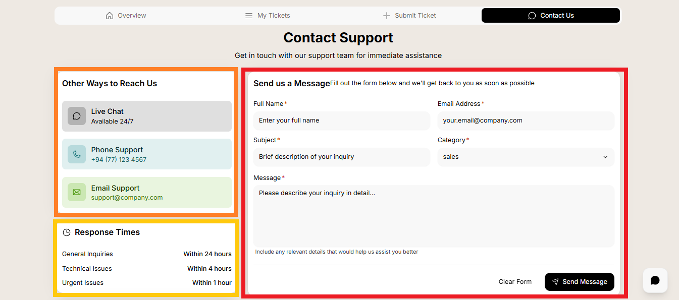 Phone Support β Call us directly at +94 XXX XXX XXX.